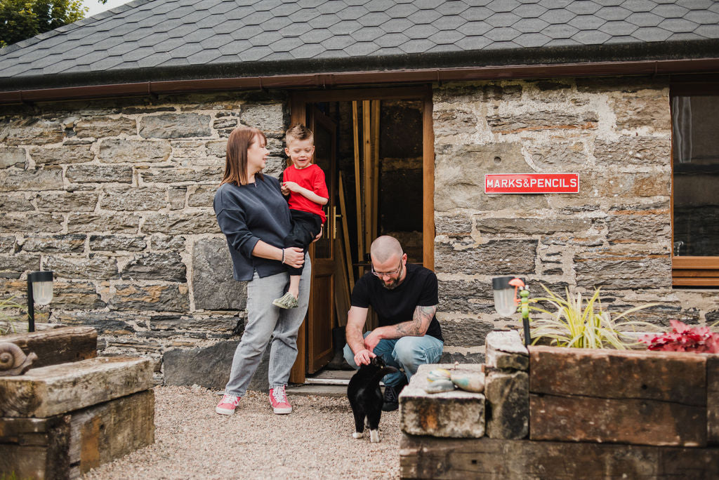 All our products are designed and created by hand from our studio and workshop in the home we share with our young son, Zakk, and menagerie of pets.
