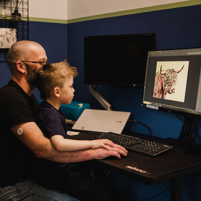 You'll often see him helping with everything; designing new products, peeling the stencils, packing and preparing orders... There's nothing he won't turn his hand to!